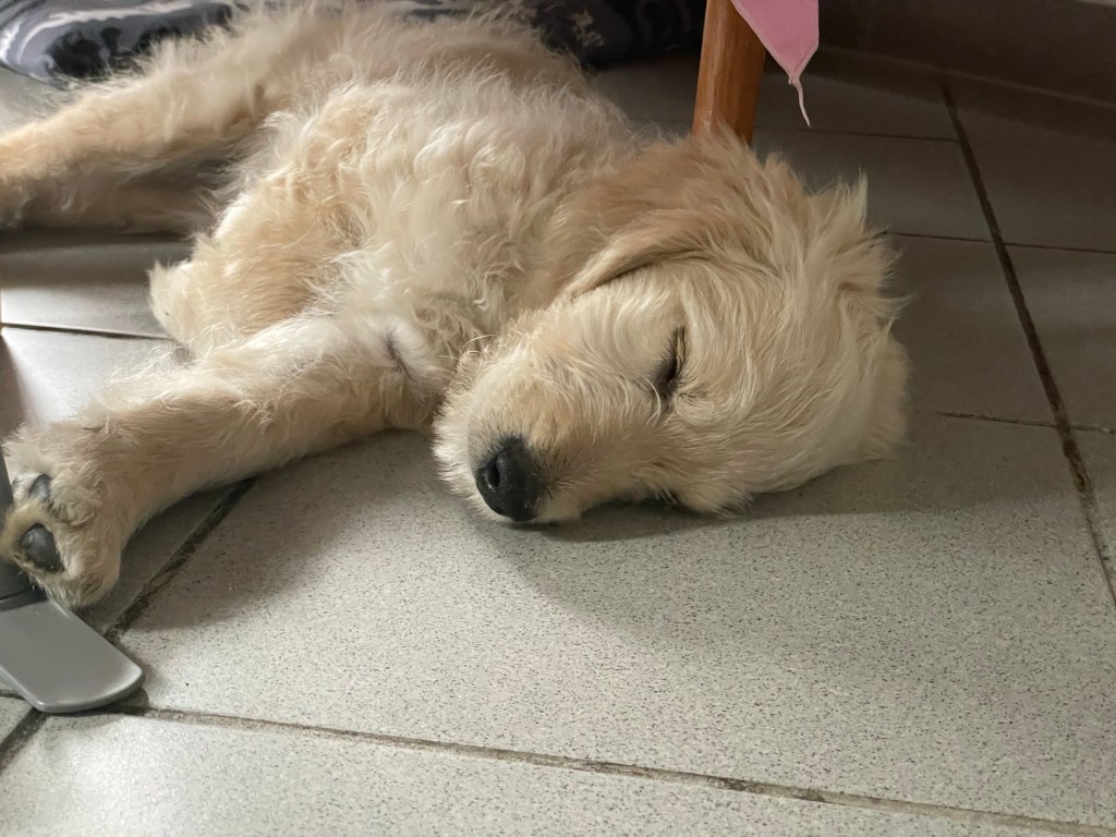 Exploring the apartment, the garden and the close vicinity makes a small dog tired.